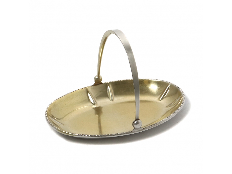 Bowl dimensions: 15.5 x 10.5 x 2 cm, height above the raised handle: 10 cm. Weight: 114 grams of silver 875 fineness.