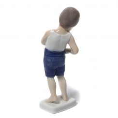 Фарфоровая фигура (статуэтка) "Малыш. Мальчик, застегивающий шорты". Ручная подглазурная роспись.