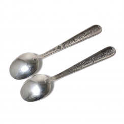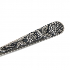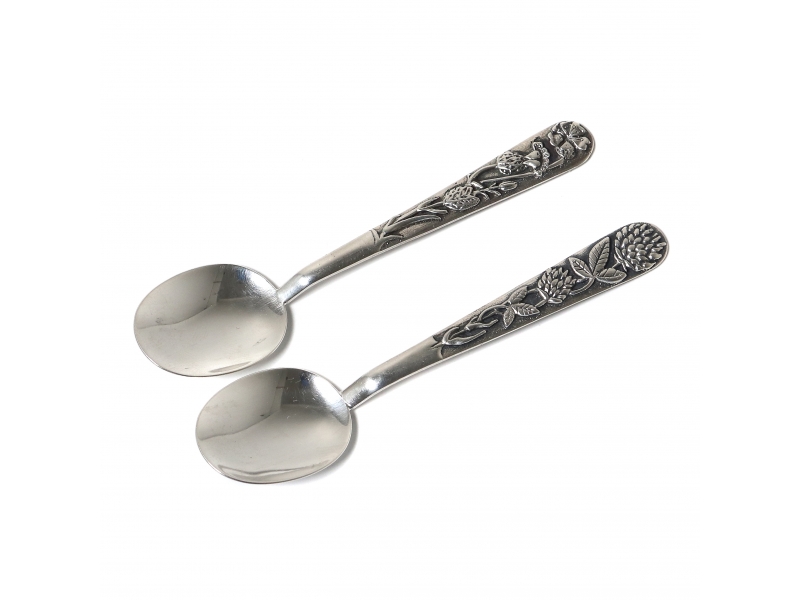 Серебряные кофейные ложки из годовой серии "Полевые цветы Швеции", 2 шт. Производились к фарфоровому сервизу «Veronica Chamaedrys Carl von Linné", фирмы Fyrklövern. На обратной стороне ложки - название цветка "Смолевка приморская" и год 1984. На обратной стороне ложки - название цветка "Клевер луговой" и год 1986.