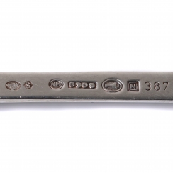 Норвегия, г.Тёнсберг, середина 20 века, мастерская Thorvald Marthinsen Solvvarefabrikk (основана в 1883 году). Номер модели: 387. Ввезена в Швецию. Государственное пробирное клеймо Швеции для ввезенных серебряных изделий.