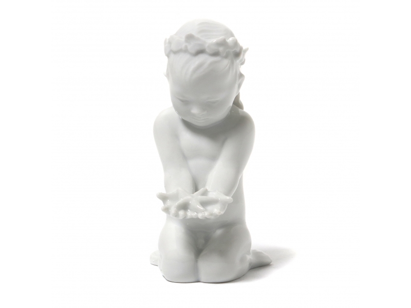 Фарфоровая фигура (статуэтка) "Мальчик-русалка с морской звездой". Нерасписанный белый фарфор. Белая глазурь.