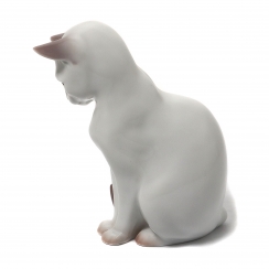 Фарфоровая фигура (статуэтка) "Белая кошка". Ручная подглазурная роспись.