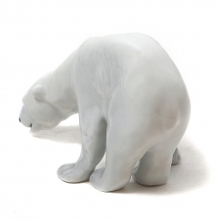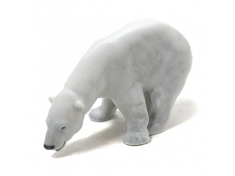 Статуэтка третьего сорта. Не обнаружил никаких очевидных производственных дефектов, повлиявших на сортность статуэтки. Без сколов, повреждений и без реставраций. =============================== Porcelain figurine "White polar bear feeding". Hand-painted underglaze.