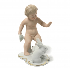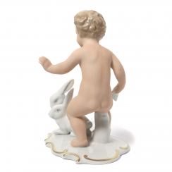 Без сколов, повреждений и без реставраций. ======================================= Porcelain figurine "Naked boy (putti) with rabbits". Hand-painted.