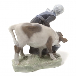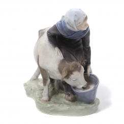 В пару к этой фигуре существует фигура "Паренек с теленком" фабрики Royal Copenhagen #772. ============================== Porcelain figurine "Girl with calf". Hand-painted underglaze.
