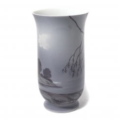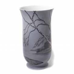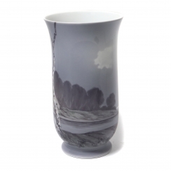 Фарфоровая ваза, декорированная панорамным пейзажем. Ручная подглазурная роспись.