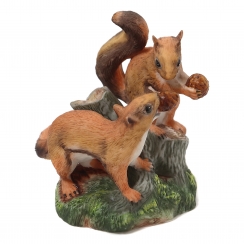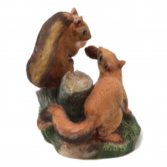 Фарфоровая фигура (статуэтка) "Лесные компаньоны" (Две белки с шишками на пне). Ручная роспись.
