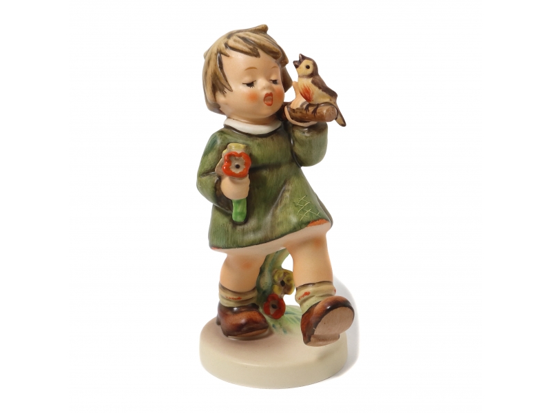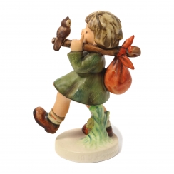 267144 - Девочка с узелком и птицей на посохе, высота 12 см, диаметр основания 5,5 см, HUM_356
