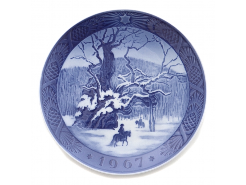 Коллекционная фарфоровая тарелка 1967 года "Королевский дуб возле Егерсприса" (Kongeegen ved Jaegerspris i sne) из серии годовых рождественских тарелок.