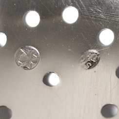 Length: 10.5 cm, strainer outer diameter: 6.4 cm. Weight: 28 grams of silver 833 fineness.