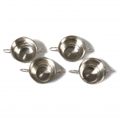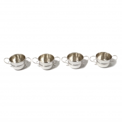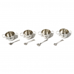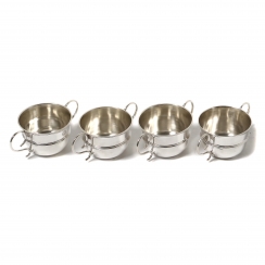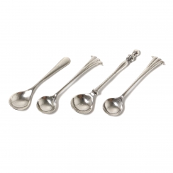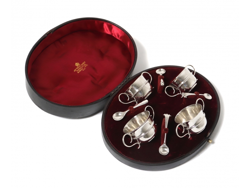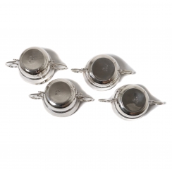 Набор из четырех серебряных солонок с ложками. Две ложки оригинальные, две - подобранные. В оригинальном футляре.