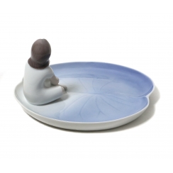 Ваза первого сорта. Без сколов, реставраций и повреждений. =================================== Porcelain dish (bowl, vase) "Thumbelina on tray" based on the Hans Christian Andersen fairytale. Hand-painted underglaze.