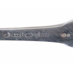 Норвегия, г.Тёнсберг, мастерская Thorvald Marthinsen Solvvarefabrikk (основана в 1883 году). Номер модели: 327. Ввезена в швецию. Государственное пробирное клеймо Швеции для ввезенных серебряных изделий,