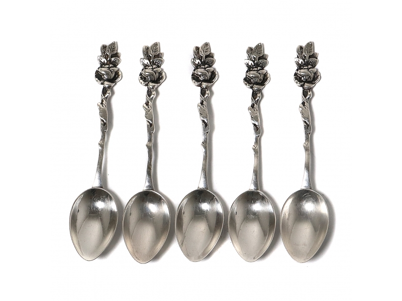 Длина: 9 см. Общий вес: 42 грамма серебра 830 пробы. =============================== Silver coffee spoons, 5 pcs.