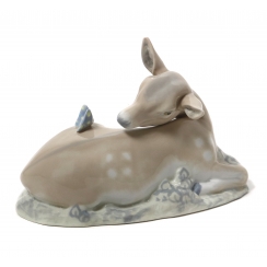 Фарфоровая фигура (статуэтка) "Оленёнок с бабочкой". Ручная подглазурная роспись.