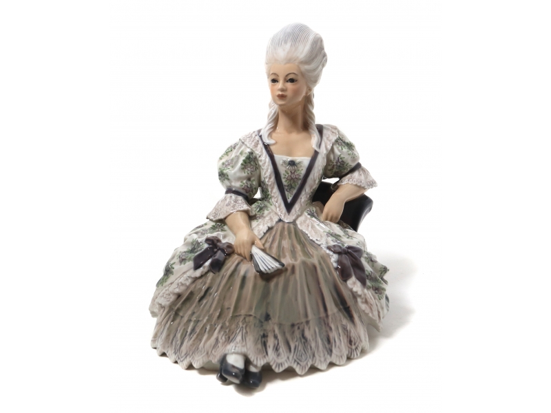 Фарфоровая фигура (статуэтка) "Дама в кресле". Ручная подглазурная роспись.