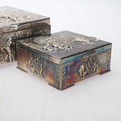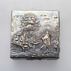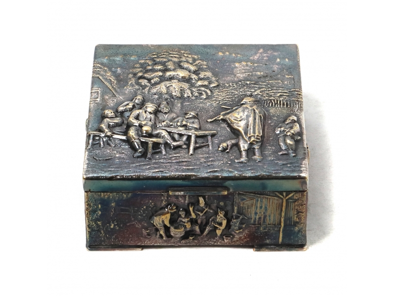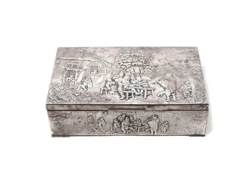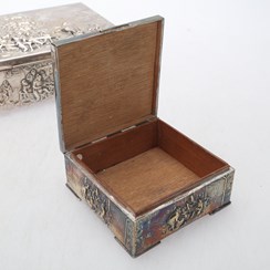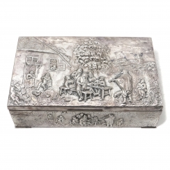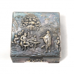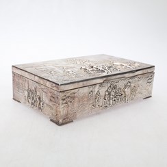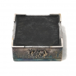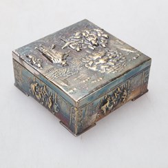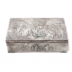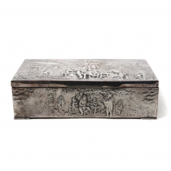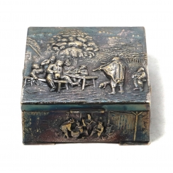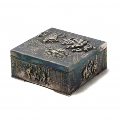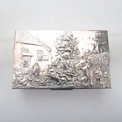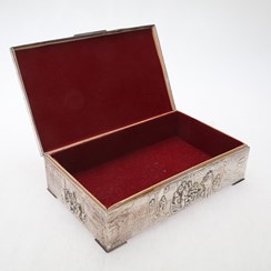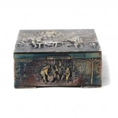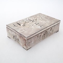 215328 - Посеребренная коробка (шкатулка). ШвецияПосеребренная коробка (шкатулка) с внутренней деревянной отделкой, декорированная рельефной сюжетной миниатюрой.