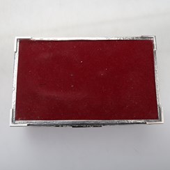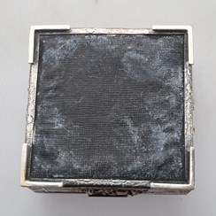 270753 - Посеребренная коробка (шкатулка). Европа, нач. 20 века.Посеребренная коробка (шкатулка), декорированная сюжетной миниатюрой. Внешняя сторона дна и внутренняя поверхность коробки обклеена плотной бархатной бумагой.