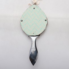 Максимальная длина: 29 см, ширина: 14 см, диаметр зеркала: 13 см. ============================= Mirror in a metal frame with a handle, decorated with plot miniature.
