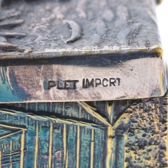 Местами стёрлась серебрение. ===================== Silver-plated casket (jewelry box) with interior wood trim, decorated with embossed plot miniature.