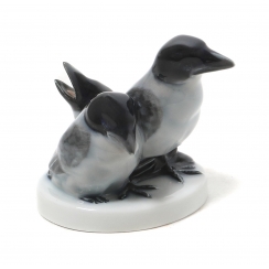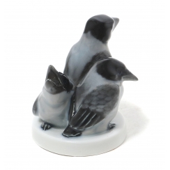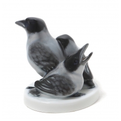 Фарфоровая фигура (статуэтка) "Молодые галки". Ручная подглазурная роспись.