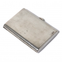На крышках несколько коррозийных пятнышек. С гравировкой. ============================= Silver cigarette case.