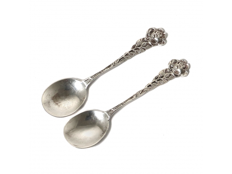 Серебряные кофейные ложки, 2 шт, декорированные розами.