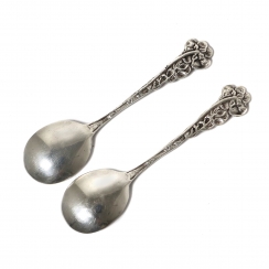 Длина: 8 см. Общий вес: 11 граммов серебра 830 пробы. ================================= Silver coffee spoons, 2 pcs, decorated with roses.