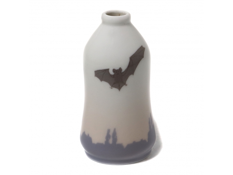 Фарфоровая ваза с изображением летучих мышей. Ручная подглазурная роспись.