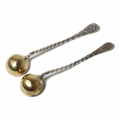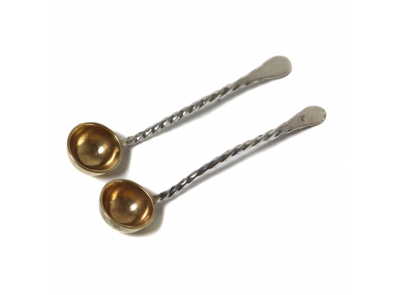 Длина: 6,8 см. Общий вес: 6 граммов серебра 925 пробы. ============================ Pair of silver spoons for spices or salt.