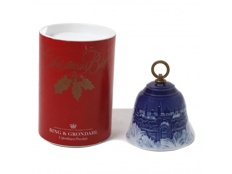 Колокольчик первого сорта. Без сколов, повреждений и без реставраций. Состояние коробки смотрите на фотографии. =============================== Annual Christmas porcelain bell "The Towers of Copenhagen". Hand-painted underglaze. In the original box.