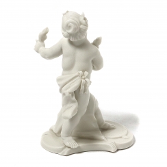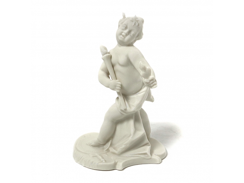 Фарфоровая фигура (статуэтка) "Путти с жезлом и цветком" из коллекции "Херувимы". Нерасписанный белый фарфор. Белая глазурь.