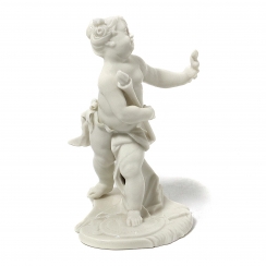 Без сколов, повреждений и без реставраций. ==================================== Porcelain figurine "Putti with a staff and a flower". from the "Cherubini" collection. White glaze. Blanc de chine.