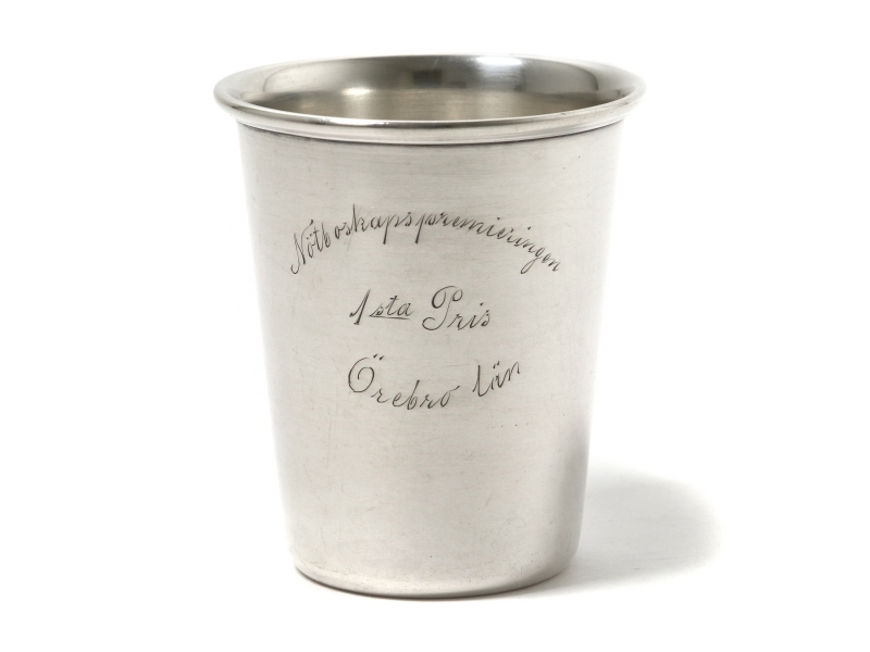 С гравировкой (1 приз). Небольшая вмятинка. ============================== Silver beaker (cup).