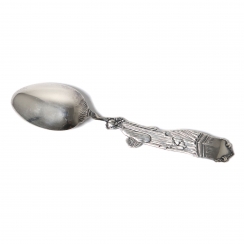 Серебряная сувенирная кофейная ложка "Статуя Свободы с факелом" с надписью на черпаке ложки Нью-Йорк.