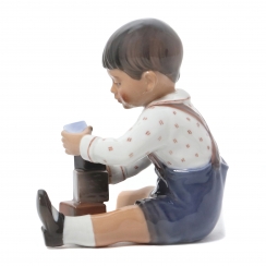 Фарфоровая фигура (статуэтка) "Мальчик с кубиками". Ручная подглазурная роспись.