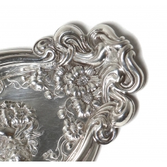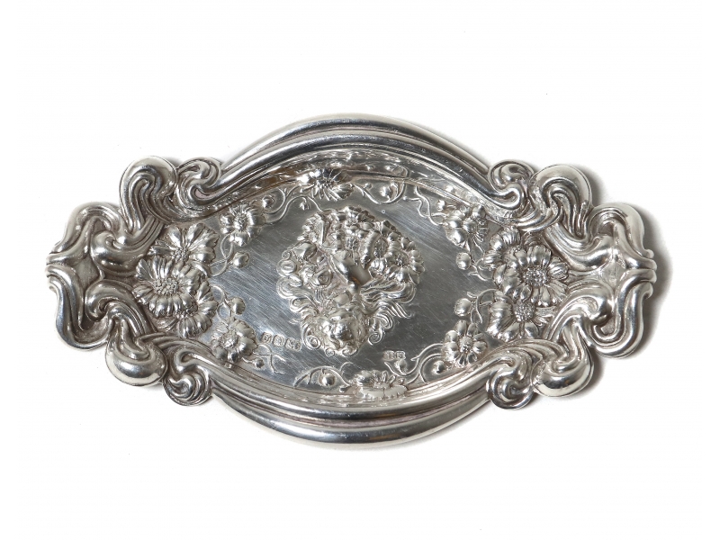 Размеры: 11,5 х 6,5 см. Вес: 32 грамма серебра 925 пробы. =============================== Small silver trinket dish (bowl), decorated with floral ornament.