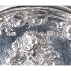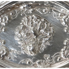 Небольшая серебряная ваза, декорированная цветочным орнаментом.