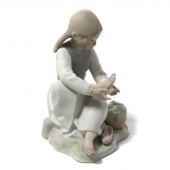 Фарфоровая фигура (статуэтка) "Уставшая девочка". Ручная подглазурная роспись.