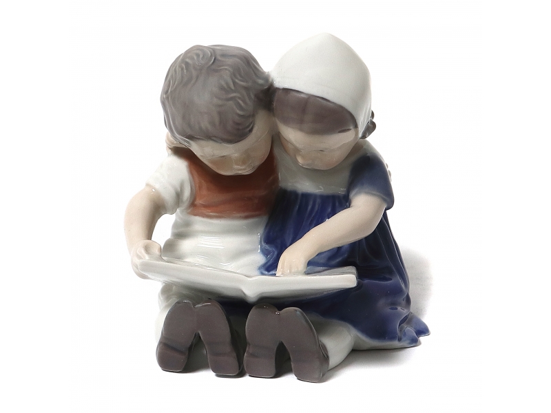 Фарфоровая фигура (статуэтка) "Дети, читающие книгу". Ручная подглазурная роспись.