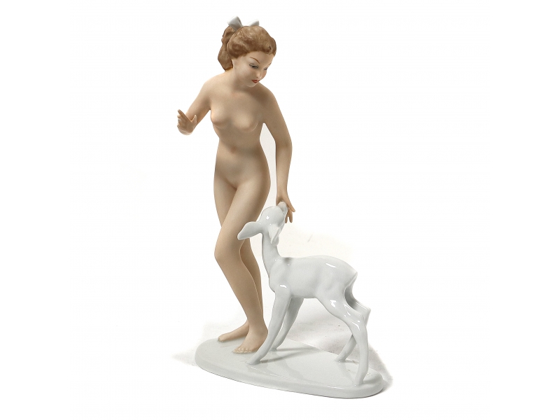 Эта же фигура выпускалась фабрикой Wallendorf с номером модели 1657. ================================ Porcelain figurine "Naked girl with roe deer". Hand-painted.