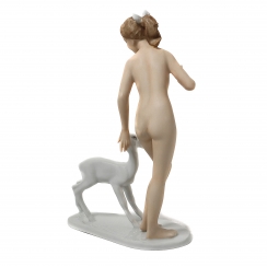 Фарфоровая фигура (статуэтка) "Обнаженная девушка с косулей". Ручная роспись.