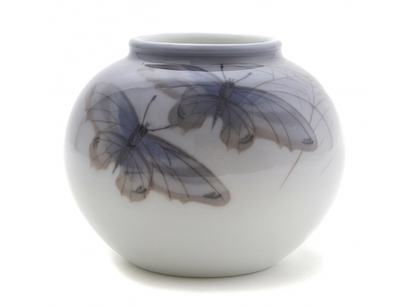 Ваза первого сорта. Без сколов, повреждений и реставраций. ================================ Porcelain vase, decorated with butterflies cobweb and flowering branch. Hand-painted underglaze.