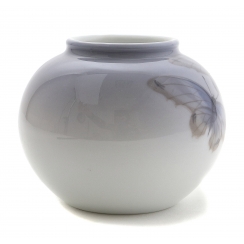 Denmark, Copenhagen, Royal Copenhagen, year 1952. Coloring design: 814. Model: 2390. The initials of the artist painted this vase: MFX . Factory mark.