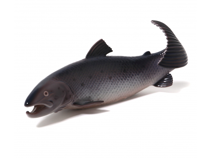 Фарфоровая фигура (статуэтка) "Лосось". Ручная подглазурная роспись.