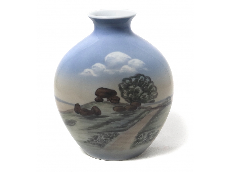 Denmark, Copenhagen, Bing & Grondahl. Painting design: 735. Model: 556. The initials of the artist painted this vase: MS . Factory mark: 3 towers B&G Copenhagen Porcelain Made in Denmark, the 1970-1983.