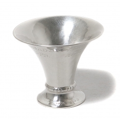 Высота: 7, диаметр верха: 6 см, объем: 140 мл. Вес: 37 граммов серебра 830 пробы.