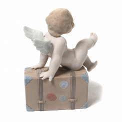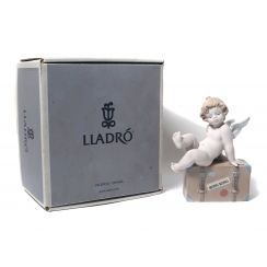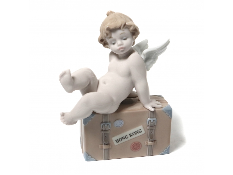Фарфоровая фигура (статуэтка) "Путешествуйте по миру Lladro (Гонконг)" (Путти на чемодане). Ручная подглазурная роспись. В оригинальной коробке.