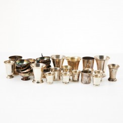 Height: 4 cm, diameter of the top: 4.4 cm. Volume: 25 ml. Total weight: 86 grams of silver 830 fineness.