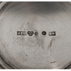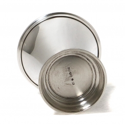 Height: 7.2 cm, diameter of the top: 5.7 cm. Volume: 130 ml. Weight: 55 grams of silver 830 fineness.